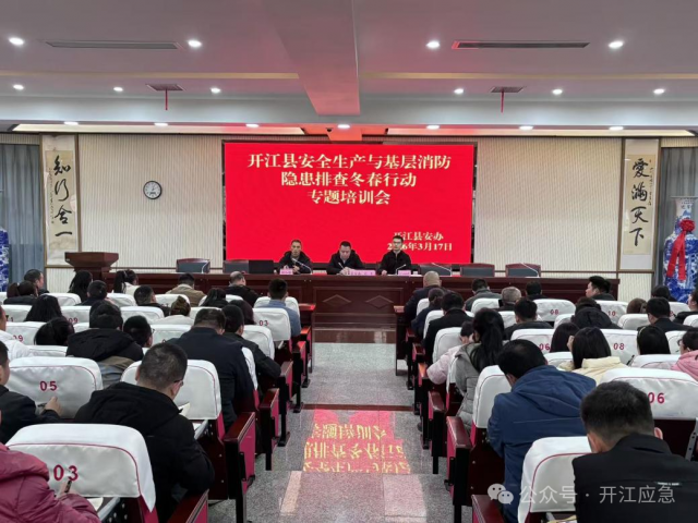 为提升基层安全生产监管能力、筑牢安全防线,推动安全生产与基层消防隐患排查“冬春行动”走深走实,3月17日下午,开江县基层安全生产隐患排查治理能力专题培训会在开江中学实验楼3楼学术报告厅召开。