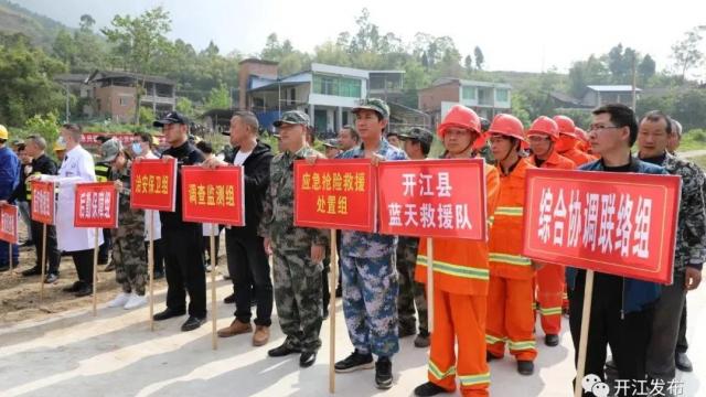 县应急管理局、县自然资源局、县水务局相关领导、开江县13个乡镇(街道办)分管安全领导,现场观摩指导和当地村民近150余人参加演练。